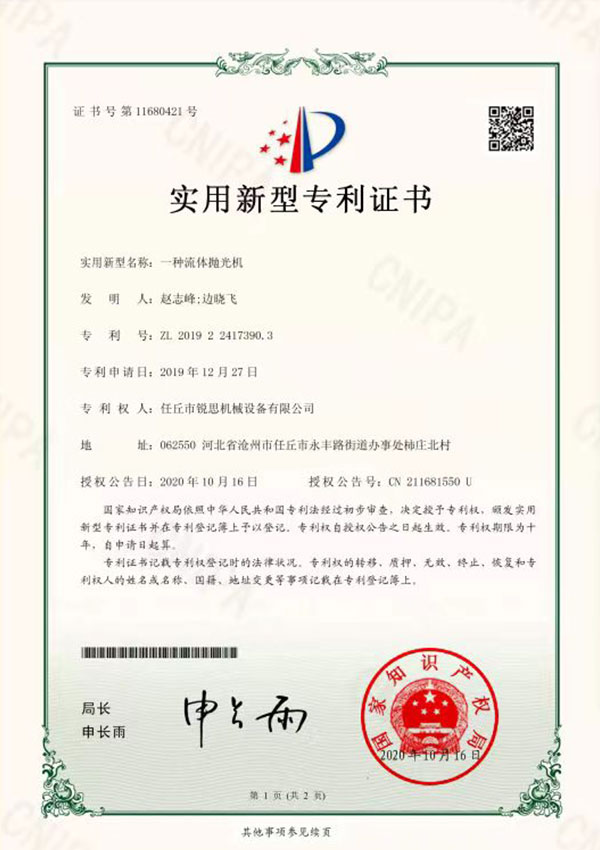 Dongguan Ruisi Machinery Equipment Co., Ltd. is a physical enterprise that integrates research and development, design, production, sales, and maintenance. Its headquarters is located in Renqiu Ruisi Machinery Manufacturing Co., Ltd. The various fluid polishing equipment developed and produced by Dongguan company, such as bidirectional abrasive fluid polishing machine, unidirectional abrasive fluid polishing machine, mirror jet polishing machine, liquid fluid polishing machine, has been widely used in the automotive industry, gear rotation, aerospace, military manufacturing, 3D printing, food equipment, medical equipment, semiconductor, new energy, mold manufacturing, textile industry, oil and gas valve body, tool passivation, hot runner plate, precision ceramics and electronic devices and other fields.